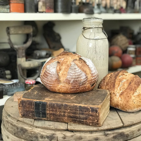 The story of Vitus is quite unique. I'm not embarking on a quest for sourdough to uncover a specific process or origin. Instead, I will be picking up Vitus, a sourdough that has journeyed to various locations in Europe and the USA, connecting with people for whom sourdough holds great significance. The final destination of this journey is the home of John Whalley, an artist and painter living in Nobleboro, Maine. John painted Vitus using the old Flemish primitive technique, using egg yolk and color, creating what is likely the only painting in history featuring a sourdough. During my visit, John and I made bread using blueberries from his garden. This story is captured in a book called "Sourdough: Four Days to Happiness" written by Martina Goernemann, who is my guide on this adventure. The book is available on amazon.com. I hope you enjoy following my "Quest for Sourdough" and learning more about Vitus.